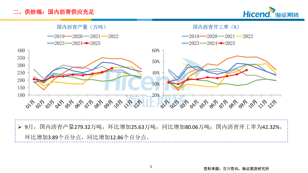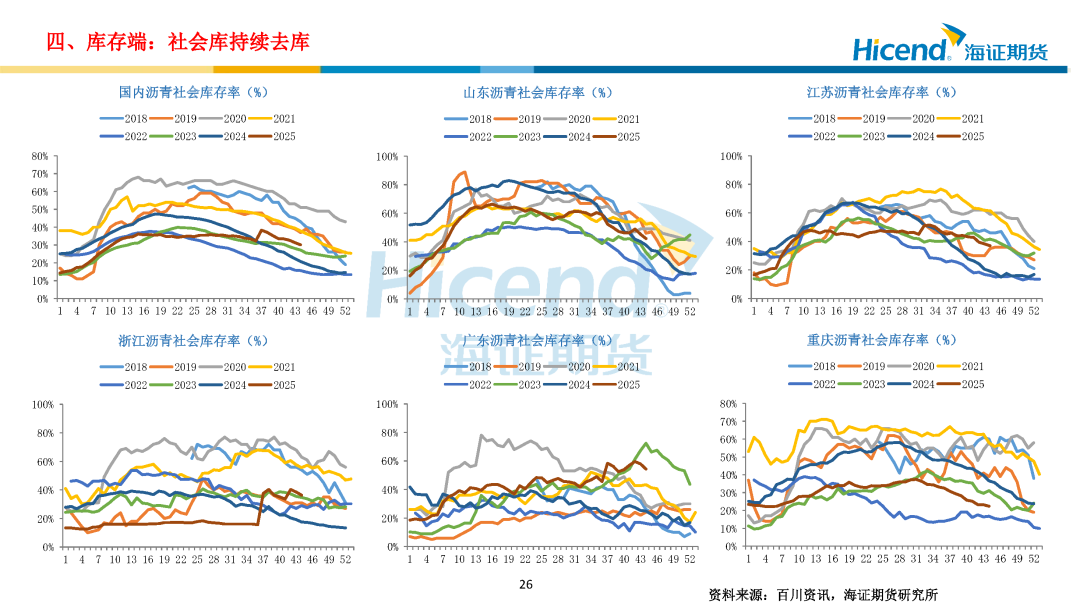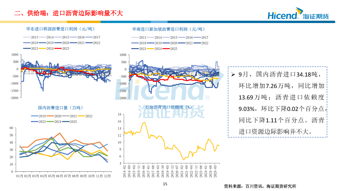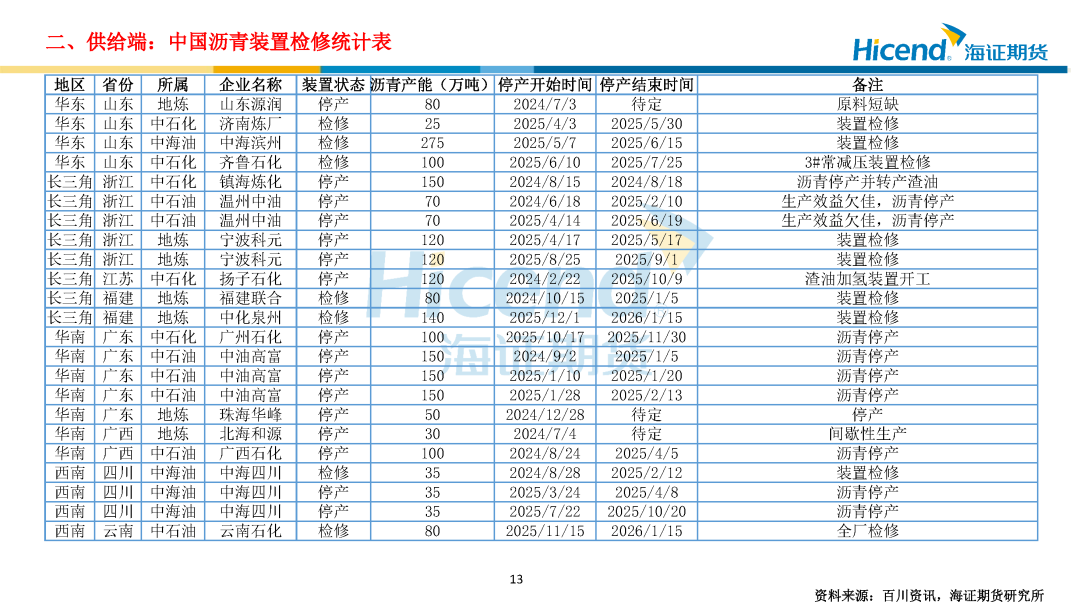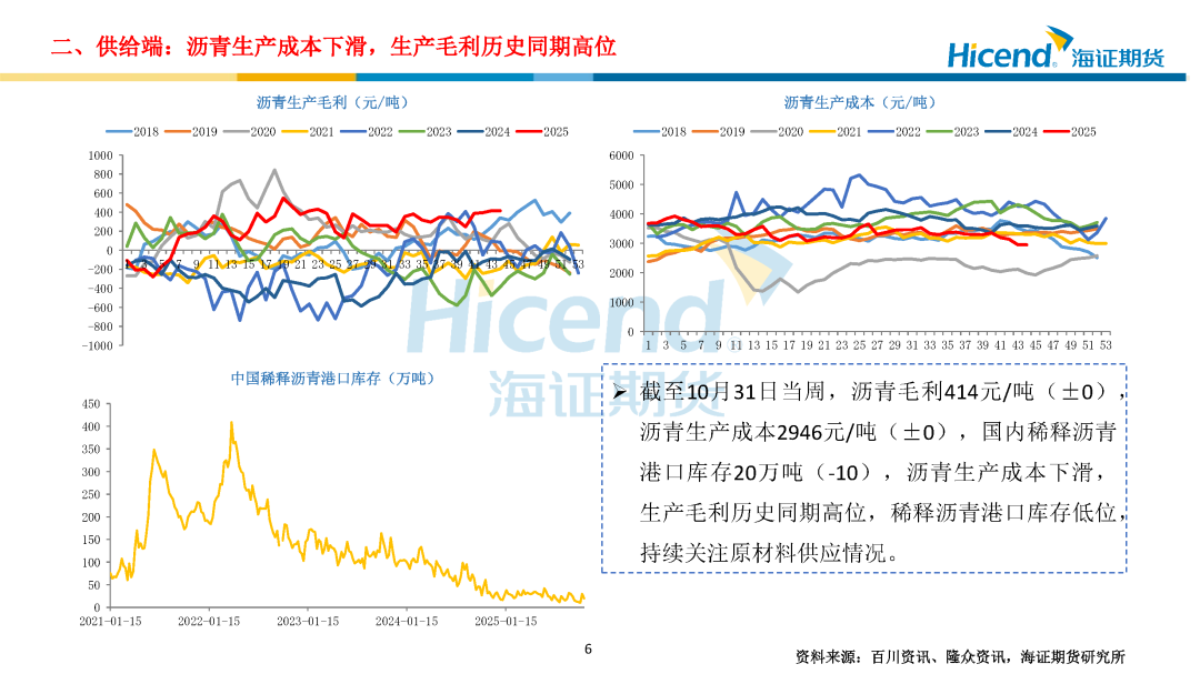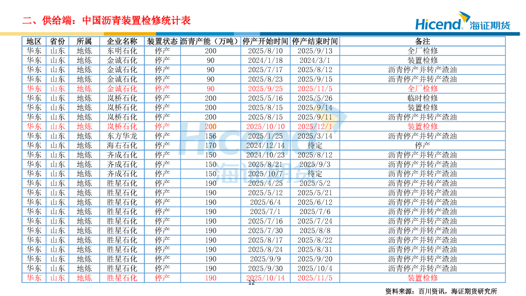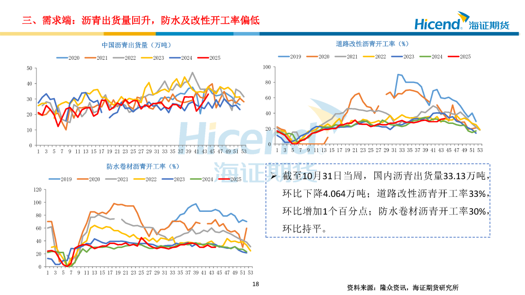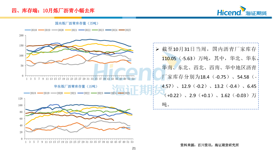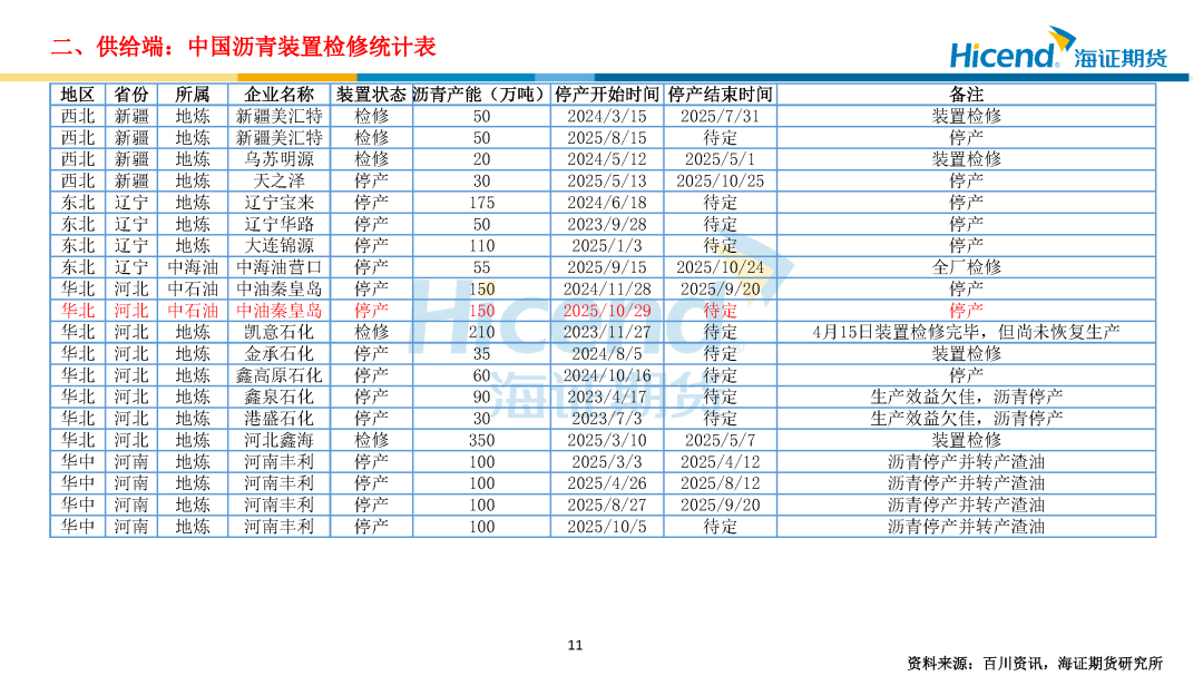 库存端:11月炼厂沥青小幅去库,社会库继续去库。我们预计,11月国内沥青在排产同环比双降、赶工需求的预期下或将延续去库节奏。