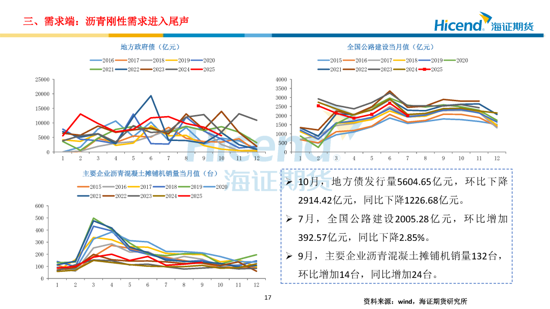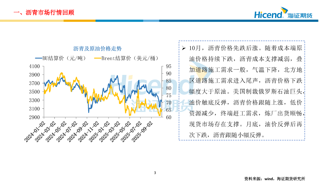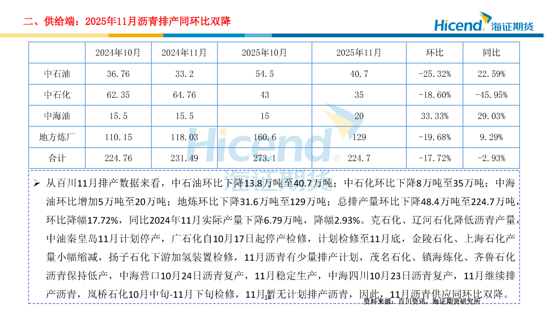 沥青:11月沥青排产同环比双降,需求季节性走弱
