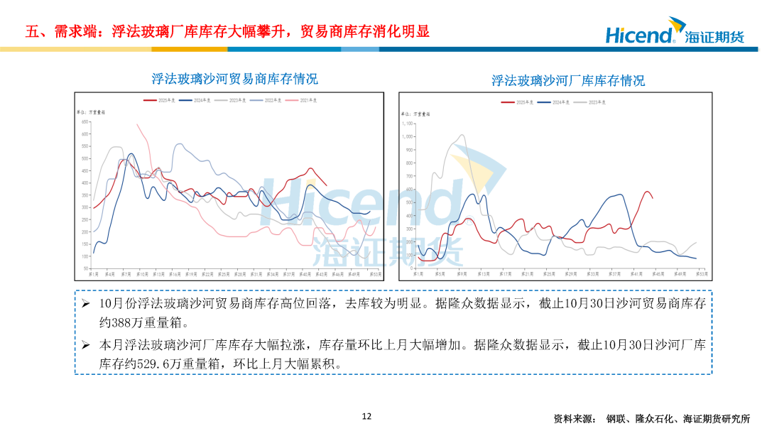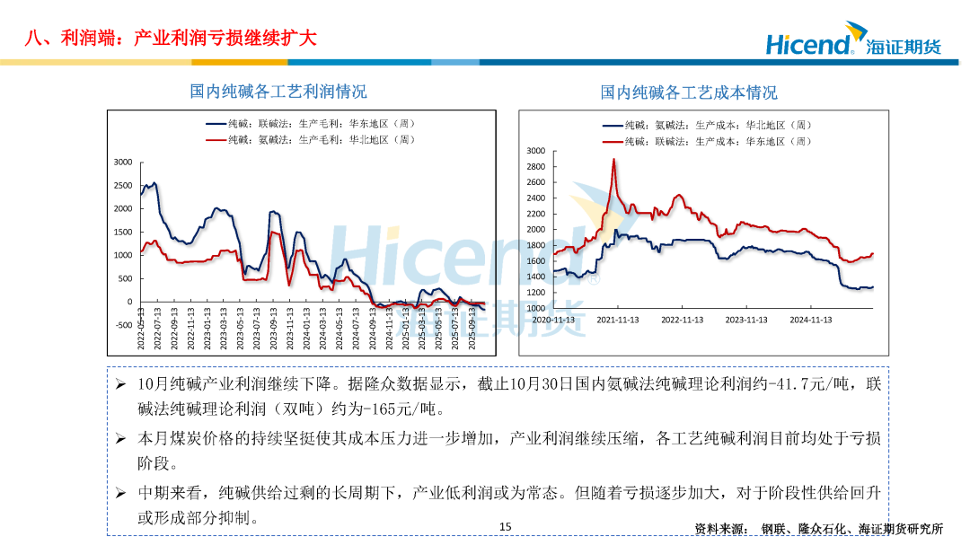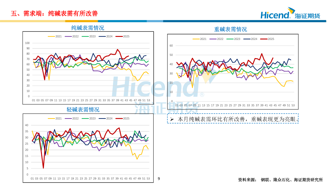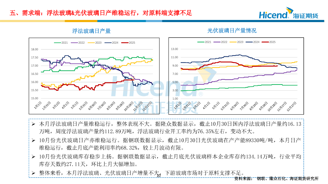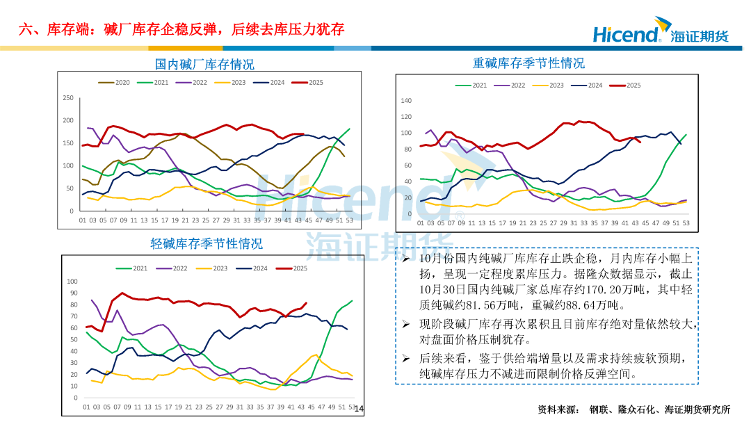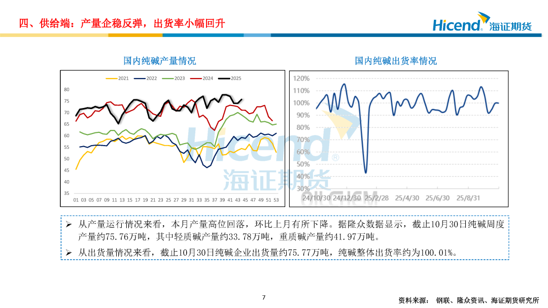 后续来看,鉴于纯碱负荷稳步回升以及需求端支撑乏力,我们认为后续纯碱供需仍或趋于宽松,产业累库恐将继续抑制价格反弹动能,预估11月份纯碱盘面仍或面临部分调整风险,建议逢高沽空思路为宜。套利方面,高库存对于近月拖累明显,纯碱01&05价差反套谨慎持有。期权方面可等待主力卖出看涨机会,注意风险控制与止损。