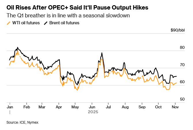 欧佩克+在平衡扩大市场份额的目标与日益显现的供应过剩信号后,决定在明年第一季度暂停增产,但该联盟下个月仍将小幅提高产量。