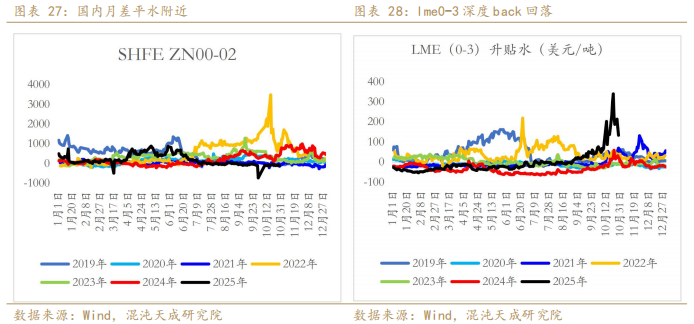 结合上述,我们分季度拆分了的国内和海外的供需情况,从2025年全球供需平衡来看,总的供需矛盾并不十分突出,虽然矿端全年预计有约70万吨的增量,但海外的供应因为亏损和环保等问题并没有兑现,过剩集中在国内,海外前三季度持续缺口,在这样的基本面格局之下,催生出的就是空国内多海外的结构性套利机会。