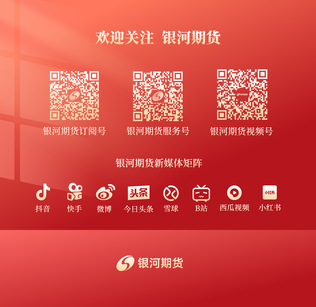 本报告所载的全部内容只提供给客户做参考之用,并不构成对客户的投资建议。银河期货认为本报告所载内容及观点客观公正,但不担保其内容以及数据的准确性或完整性。客户不应单纯依靠本报告而取代个人的独立判断。本报告所载内容反映的是银河期货在最初发表本报告日期当日的判断,银河期货可发出其它与本报告所载内容不一致或有不同结论的报告,但银河期货没有义务和责任去及时更新本报告涉及的内容并通知客户。银河期货不对因客户使用本报告而导致的损失负任何责任。