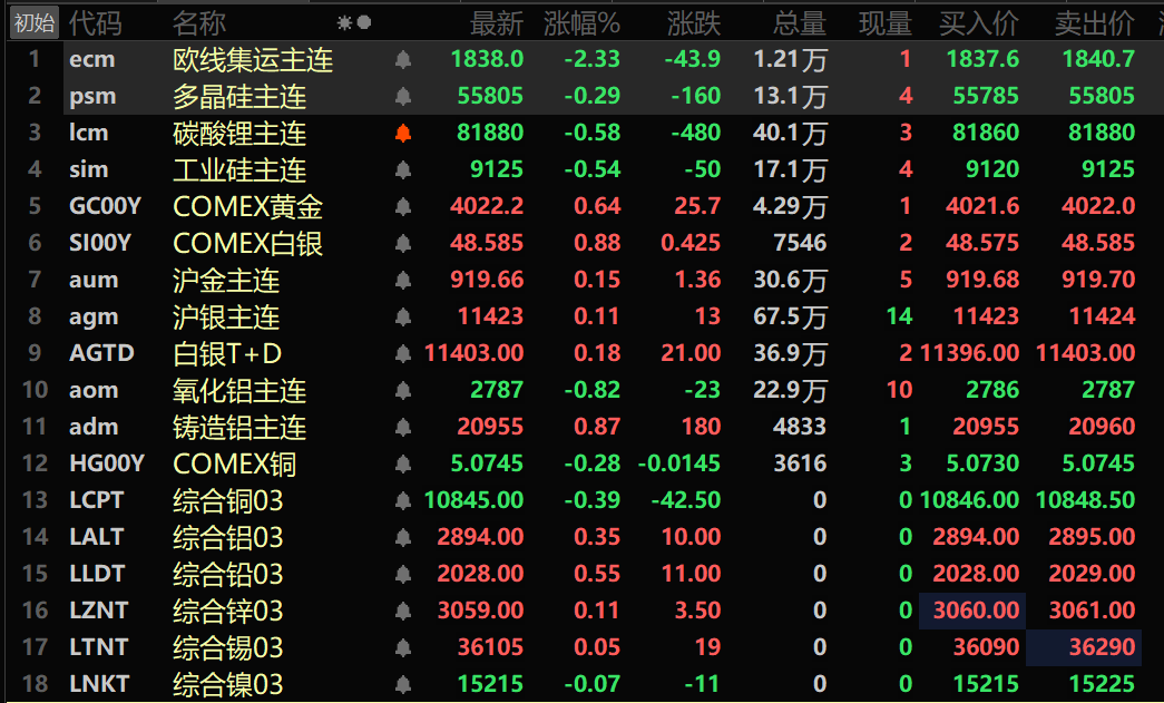 基本金属普涨纽银、铸造铝涨近1%铁矿、欧线集运跌超2%【SMM午评】