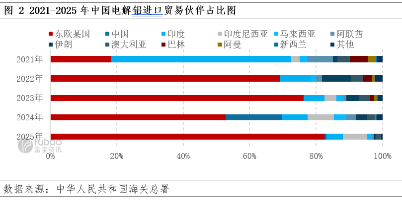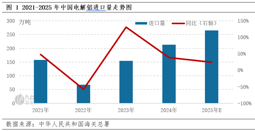 根据中华人民共和国海关总署公布数据,2025年我国电解铝预计进口总量达265万吨,较2024年增加51.3万吨,增幅24.01%。值得注意的是,自2024年二季度起,国内铝价攀升导致国内外价差缩小、进口利润严重倒挂,进口窗口至今基本关闭,进口货源对国内市场的冲击已明显减弱。不过2025年进口量仍能保持增长并有望达到260万吨高位,主要增量来自欧洲某大国,源于中国与该国签订的每月10万吨铝锭供应协议,且这些进口铝锭基本直接流入下游加工厂。
