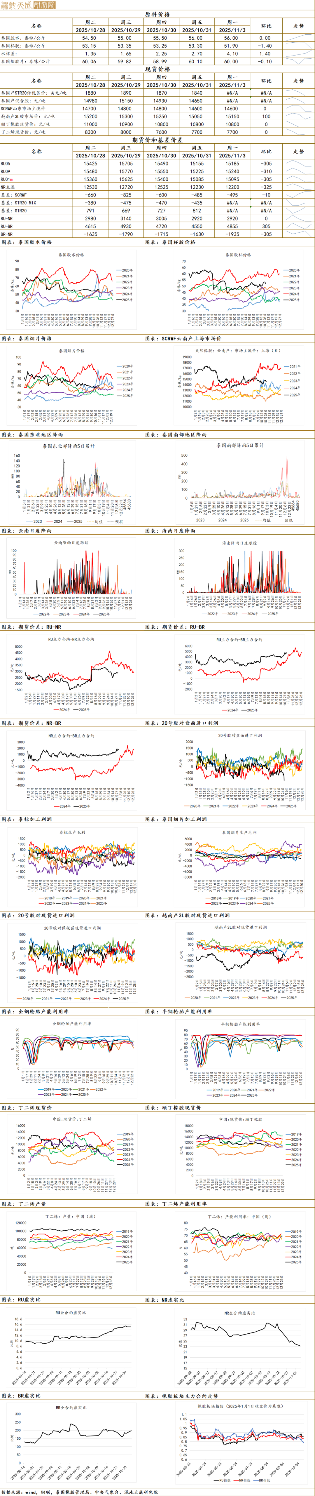 总的来说,近期橡胶基本面及宏观均出现转弱趋势,胶价回调幅度较大,从库存数据来看季节性累库到来,胶价或继续受供需宽松的压制而向下调整。后续来看,10月进口数据是验证关键,而泰国产区天气较好及割胶积极性较强的背景下,预计上量幅度不低,关注胶杯下方48-49泰铢支撑如何,以及短期有无天气扰动。策略上,NR近月合约偏空看待,RU受低仓单支撑,短期深强浅弱的格局可能扭转,可尝试布局深浅反套头寸。
