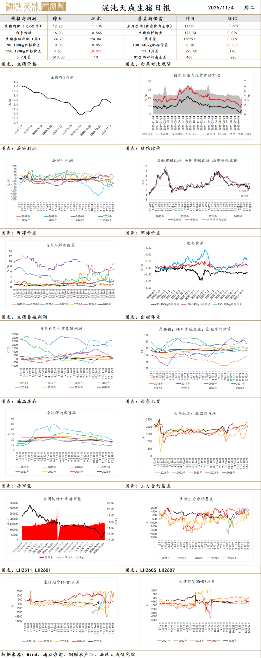 现货方面,昨日现货报价12.2元/kg,环比-1.13%;LH2601主力合约报价11735元/吨,环比-0.68%。