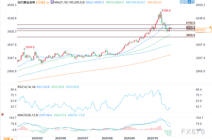 12月黄金期货:多头的下一个上行价格目标是推动合约收盘价突破4100.00美元的强劲阻力位。空头的近期下行价格目标是将期货价格压至3800.00美元的强劲技术支撑位下方。第一阻力位见于隔夜高点4038.70美元,其次是上周五高点4059.90美元;第一支撑位见于4000.00美元,其次是3950.00美元。