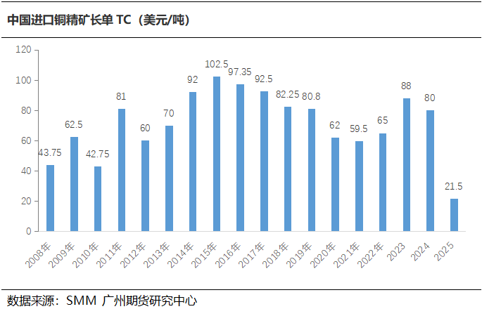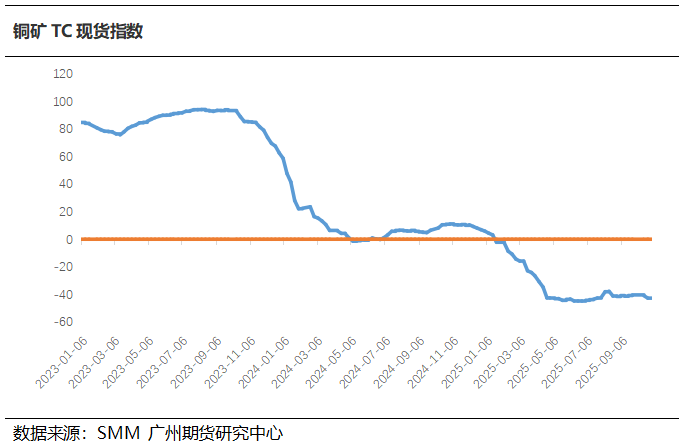 对于中国冶炼厂而言,由于长单TC(2025年为21.25美金/干吨)及副产品仍对冶炼利润有一定贡献,25年精炼铜产量保持高位,但市场预期2026年长单TC很可能维持在零水平甚至个别谈判可能出现负值。而Antofagasta与中国主要冶炼厂于2025年6月份以0美元/干吨和0美分/磅的长单加工费锁定2026年50%的矿量,已首现零加工费时代,接下来2025年12月份就剩下50%矿量加工费的磋商结果亦为市场关注的焦点。以此推测,中国冶炼厂后期可能也将面临巨大亏损压力,不排除出现联合减产行为。