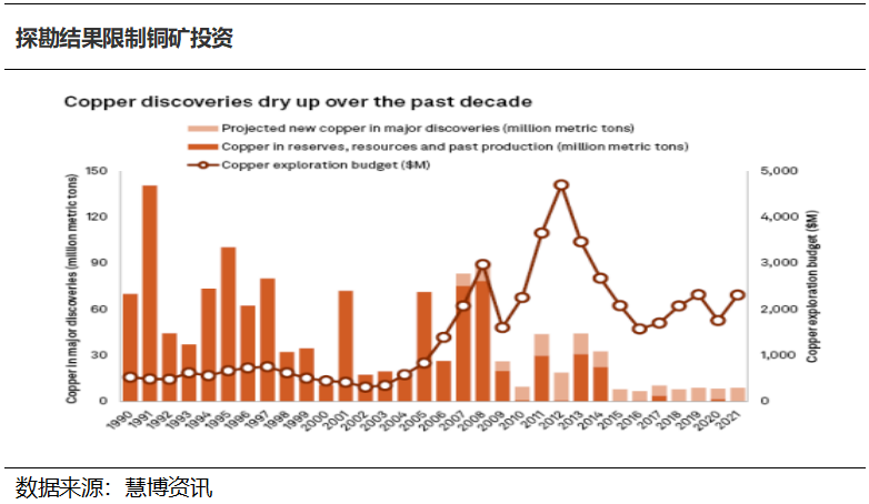投资不足:一个大型铜矿从勘探、可行性研究、建设到投产,通常需要8-10年时间,投资巨大且风险极高。这意味着今天的供应短缺,其根源可追溯至10年前的投资决策。在2010年代中期大宗商品“超级周期”结束后,矿业公司资本开支转向谨慎。随后,ESG(环境、社会和治理)投资的兴起,以及全球能源转型背景下投资者对化石燃料的规避,并未完全转化为对基本金属的青睐,导致流向新铜矿项目的资金长期受限。