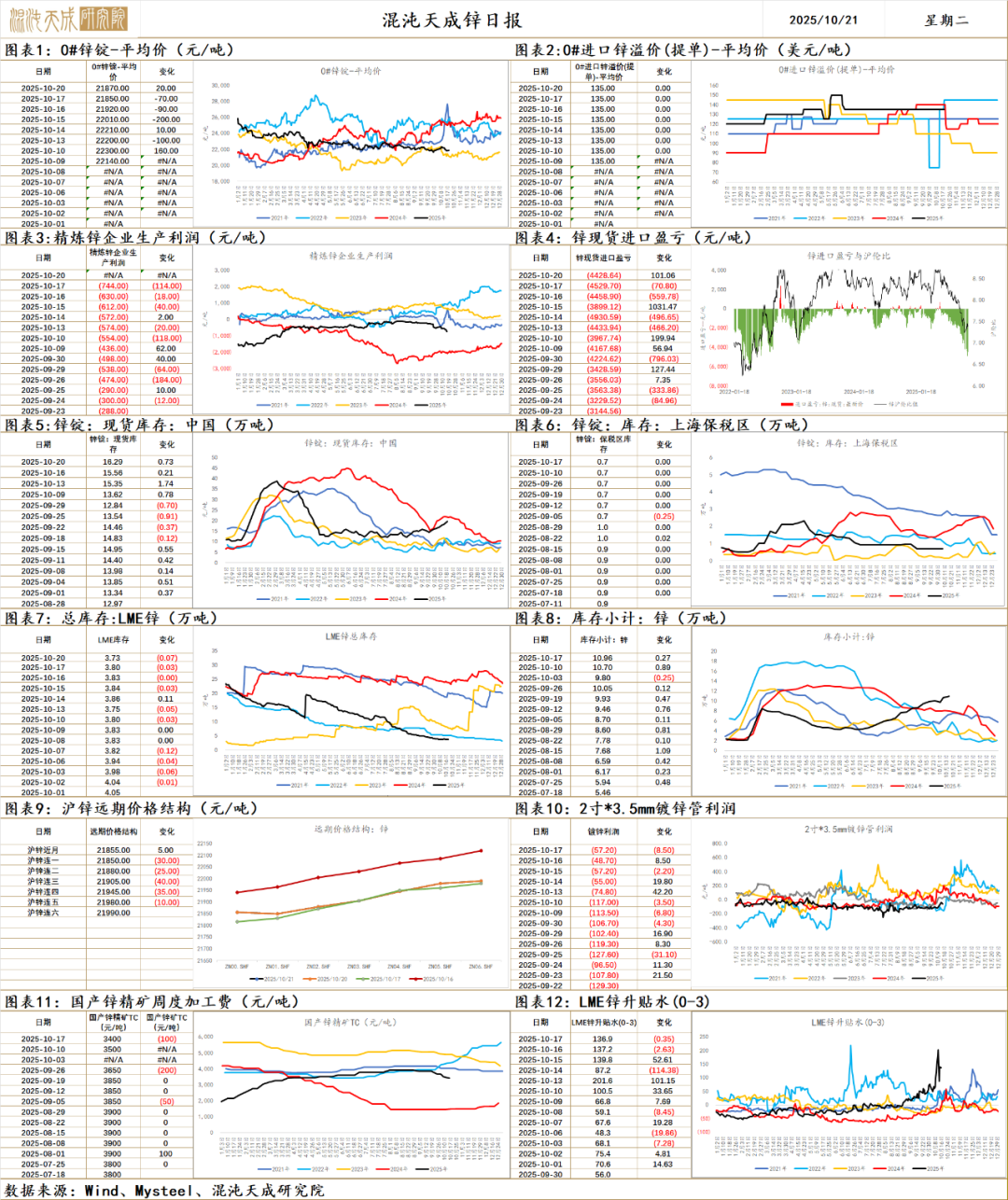 1.【五矿资源:第三季度锌总产量为5.87万吨,同比增长26%】SHMET10月21日讯,五矿资源发布公告,2025年第三季度,锌总产量为5.87万吨,同比增长26%。Dugald River矿山生产4.81万吨锌精矿含锌,较2024年同期增长38%,主要得益于运营优化所推动的采矿和选矿回收率的显著提升。Rosebery矿山生产1.06万吨锌精矿含锌,较去年同期下降8%,主因与开采顺序有关的锌的选矿品位降低。在金、银和铜等副产品的显著贡献的带动下,锌当量产量达2.74万吨。(五矿资源)