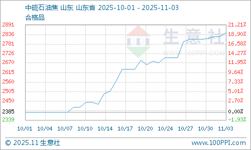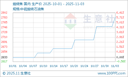 据生意社商品分析系统显示,近期地炼石油焦行情持续上涨,截止到11月3日山东市场地炼石油焦价格为2845.75元/吨,较10月27日2793.25元/吨上涨1.88%。