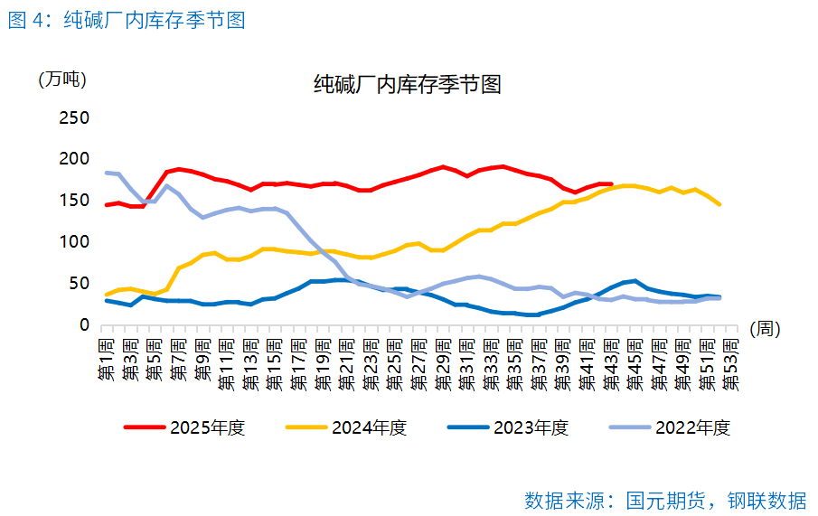 近期纯碱企业产量微幅波动,企业产销相对平衡,纯碱库存环比窄幅增长。截至2025年10月23日,国内纯碱厂家总库存170.21万吨,环比增加0.16万吨,涨幅0.09%。