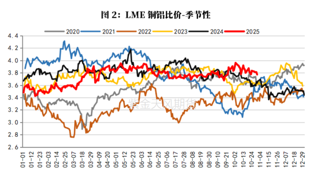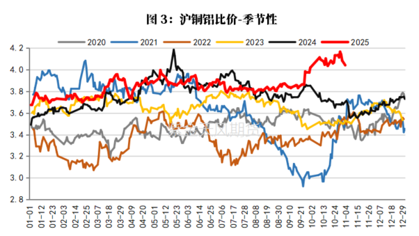 从历史上看,一旦铜铝比价突破3.5-4.0的关键区间,会触发铝的经济性功能,下游电力、电缆等行业倾向于采用更具成本效益的铝材来替代铜材。