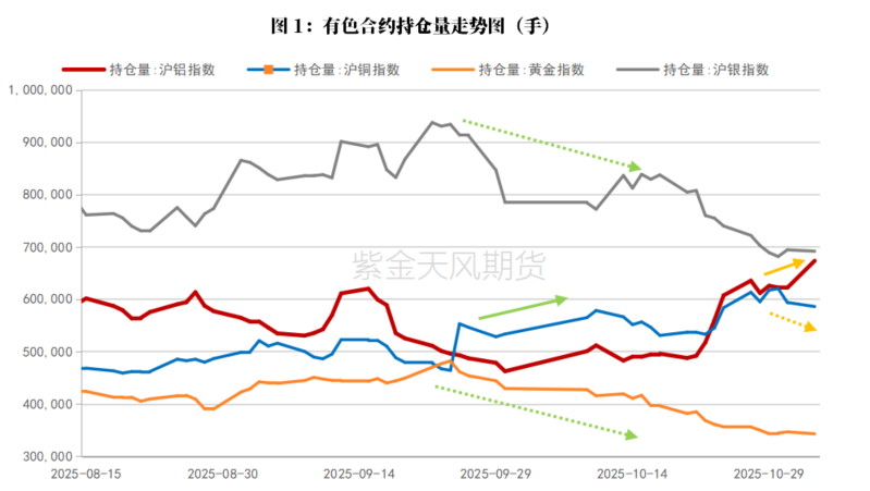今年以来全球债市信用风险及关税事件频发,黄金、白银作为避险资产表现强势,持仓量持续攀升。直至9月末,贵金属持仓量见顶回落,资金开始转向铜品种。这一转换的主因是铜矿供给端的频繁干扰事件,吸引了大量增量资金入场。
