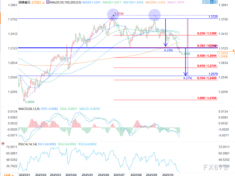 英镑/美元双顶形态预示进一步下行