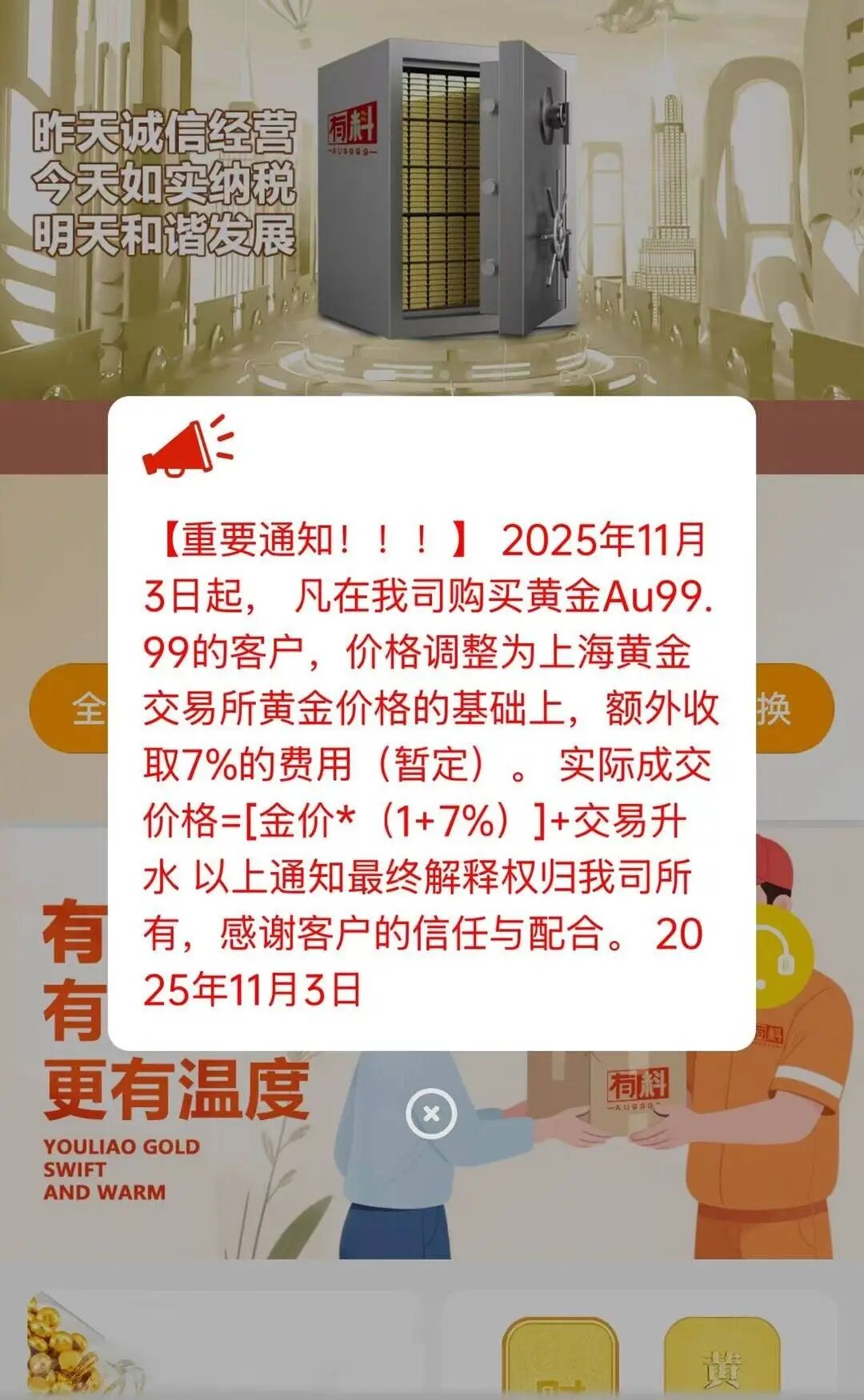黄金税实行后,黄金市场大幅调价图据社交平台