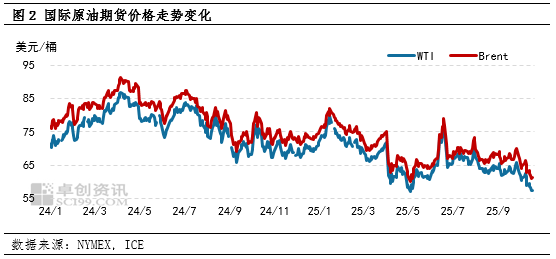 节后成本端的快速走弱,加速现货价格下移。以色列与哈马斯于10月9日签署了停火协议,结束加沙冲突进入了第一阶段,以色列与哈马斯停火降低了地缘政治风险溢价,市场注意力重新转向即将出现的石油过剩问题。10月10日,特朗普在社交平台发推文加剧贸易紧张局势,给本已供过于求的市场带来了需求前景的不确定性,欧美原油期货创下数月来最大单日跌幅,WTI跌破每桶60美元。且供应过剩的担忧持续压制市场价格,WTI原油跌破60美元后继续震荡下行。短时间的成本端的大幅走低,成本支撑减弱是沥青价格下行的最主要原因。