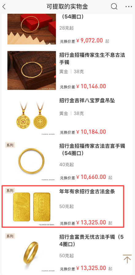 此外,在招商银行App中,截至目前,该行积存金兑换实物黄金主要以黄金饰品为主,金条相关产品仅剩“年年有余招行金古法金条”。不少网友在网络平台上提问称,该行的经典款招行金投资金条、富贵圆满招行金投资金条等产品均不在可兑换的范围内。