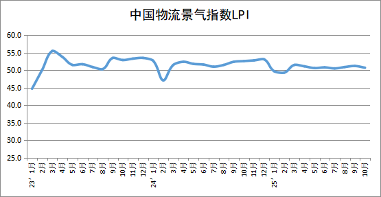中物联:2025年10月份中国物流业景气指数为50.7%较上月回落0.5个百分点