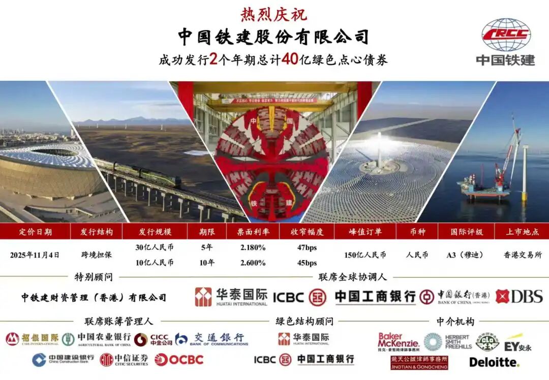 中国铁建成功发行离岸人民币绿色债券