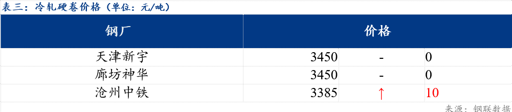 | 表一:冷轧基料价格(单位:元/吨) | ||||