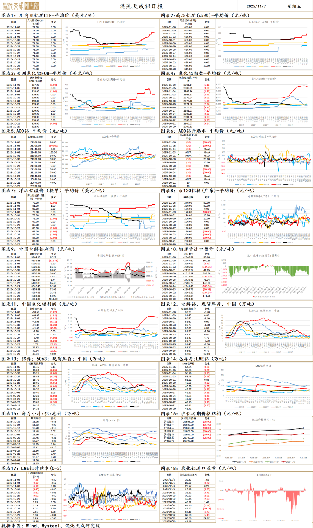 原料端,化工行业反内卷但无产能出清政策,氧化铝政策基本落空,进口澳矿价和现货继续下跌。氧化铝进口窗口打开,国内氧化铝面临进口供应的压力。周产量持续高位,库存持续累库,基本面仍偏空。