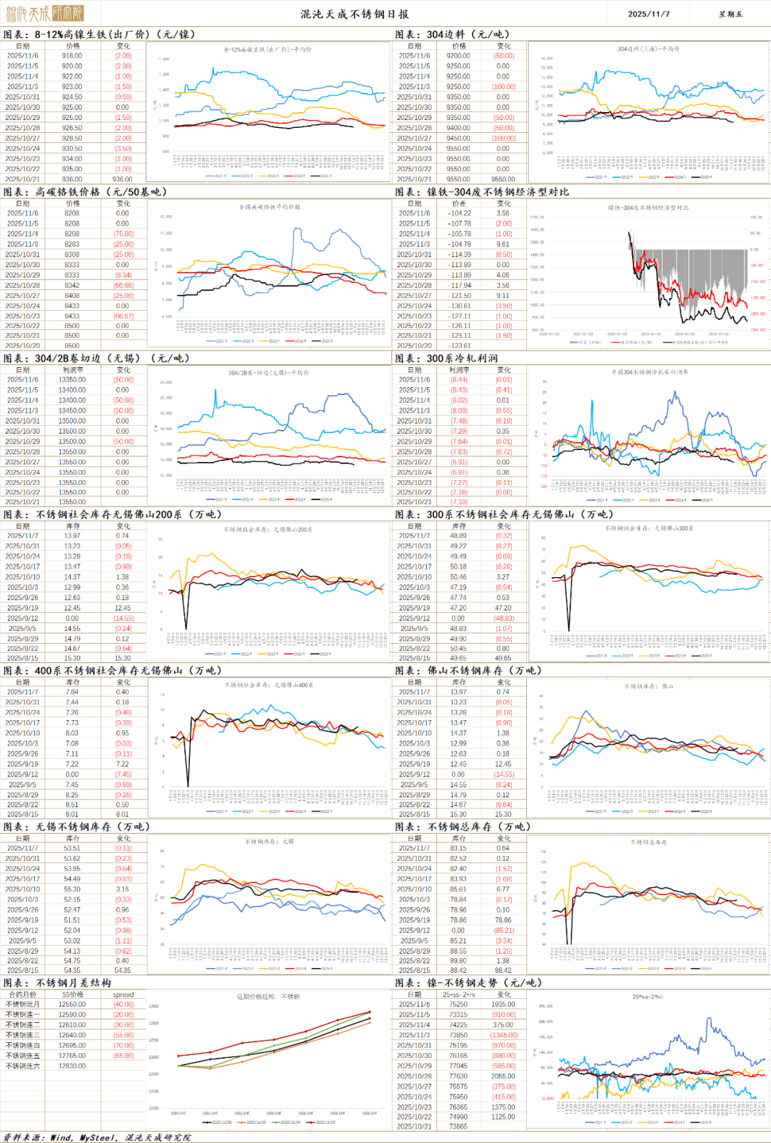 昨日不锈钢主力合约收盘价12560元/吨,涨跌幅0.316%。无锡现货基差升水维持470元/吨;主力合约持仓-5992至68420手;仓单-828至72462吨。