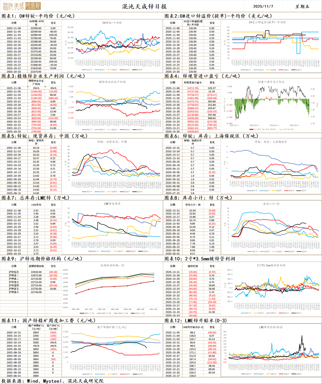 供给端,中国2025年9月锌矿砂及其精矿进口量为50.5万吨,同比增25%,矿端供应持续增加,国产锌精矿TC环比下行,进口锌精矿TC止涨开始下行,冶炼厂锌精矿库存同期中位水平以上,算上副产品硫酸冶炼利润仍存,从百川11月的排产调研来看,11月排产仍有7800吨的预增。