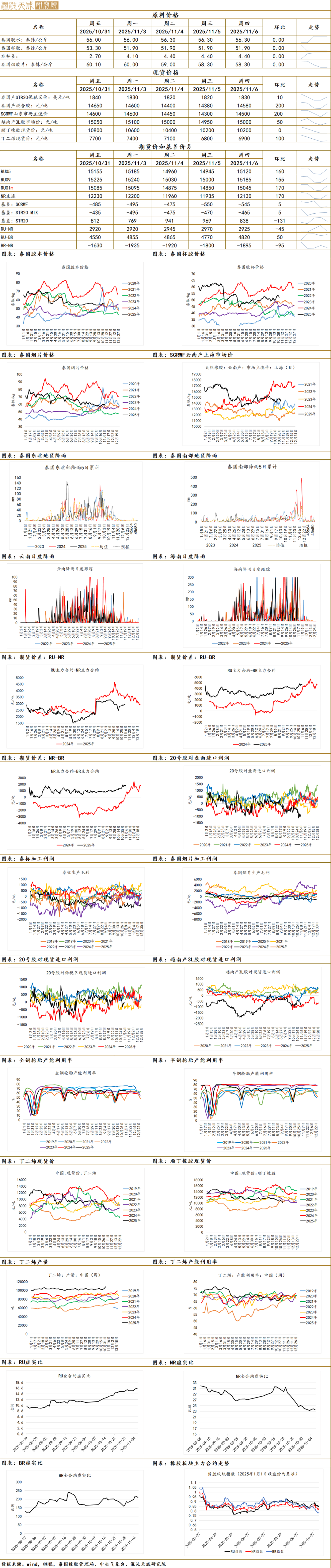 3.机构消息:根据西双版纳统计局11月4日《2025年9月西双版纳州国民经济主要统计指标》数据显示,2025年1-9月云南西双版纳州干胶产量248908吨,同比去年的234121吨,增长6.3%!累计加工标准天然橡胶63.4万吨,同比去年的55.57万吨,增加7.83万吨,增幅14.1%!(西双版纳统计局)