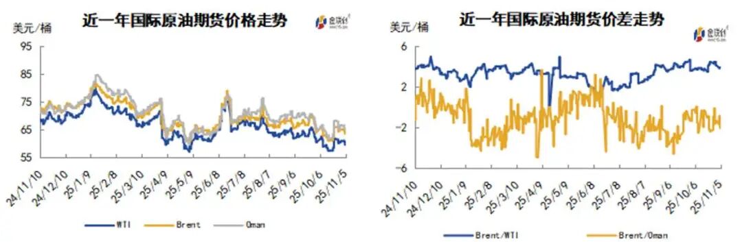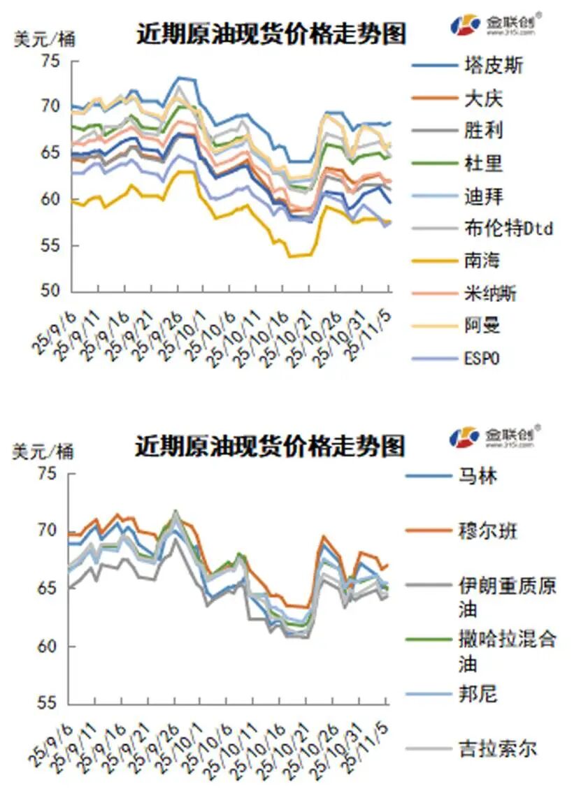 经济方面,投资者对中美贸易前景的担忧缓解。中美两国元首在韩国釜山举行会晤,深入讨论了中美经贸关系等议题,同意加强经贸等领域合作。但与此同时,美联储内部政策分歧令市场对年内美联储再次降息持观望态度,美元持续走强使得以美元计价的原油承压。此外,此次美国政府停摆创下最长停摆纪录,投资者对美国经济以及能源需求前景的担忧也拖累了油价的走势。