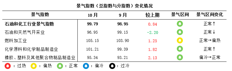 石油和化工行业景气指数由中国石油和化学工业联合会与山东卓创资讯股份有限公司联合编制,是石油化工行业的微观景气循环监控指标,包括“石油和天然气开采业景气指数”“燃料加工业景气指数”“化学原料和化学制品制造业景气指数”“橡胶、塑料及其他聚合物制品制造业景气指数”4个分指数。