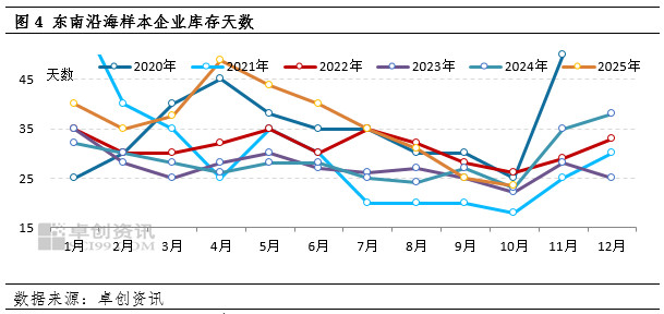 11月南方沿海需求量或有提升,从图4中可以看出,根据历史数据判断,11月东南沿海下游企业库存或有累积,从需求层面对东南沿海港口价格有利多影响。但考虑到目前终端养殖盈利亏损,饲料企业采购积极性与对价格的接受度预计有限。