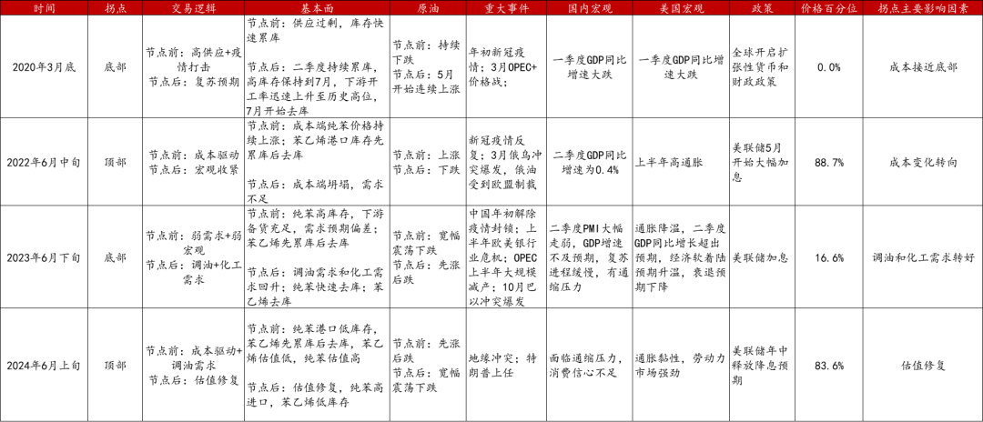 总体来看,本轮拐点的出现主要因为苯乙烯和纯苯估值修复需求,以及成本端的走弱。