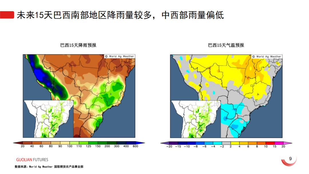 1、巴西大豆生产者协会:巴西大豆农户将面临大面积作物歉收。受干旱影响,Aprosoja Brasil预计本年度大豆产量为1.1-1.15亿吨。