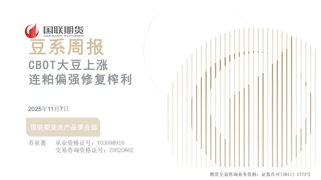 豆系:CBOT大豆上涨,连粕偏强修复榨利