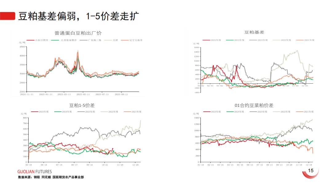 月间价差:关注豆粕11-1价差正套,以及更远月的1-5价差正套的机会。企稳可介入。