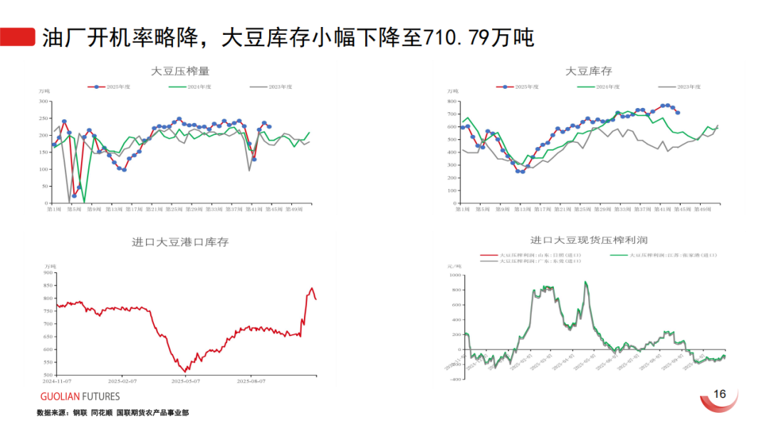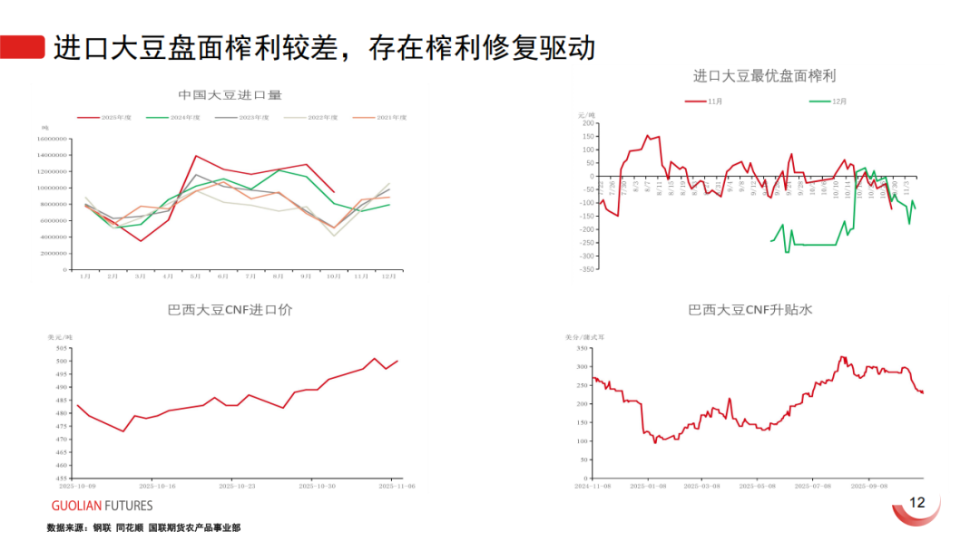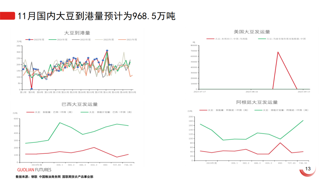 2、据第三方统计:12月份国内港口进口大豆实际到港102船644.13万吨,高于预告的597.13万...