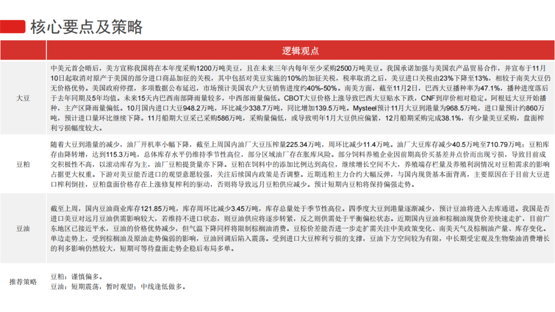 【外盘影响】国外天气炒作带来心理支撑,短期偏强。但目前巴西干旱影响不大、物流没有问题,尤其是南美农民卖压还未体现的情况下,上方承压。所以我们还是维持12月初以来的基本方向关注中美谈判结果和巴西干旱是否持续并减产达到1000万吨。