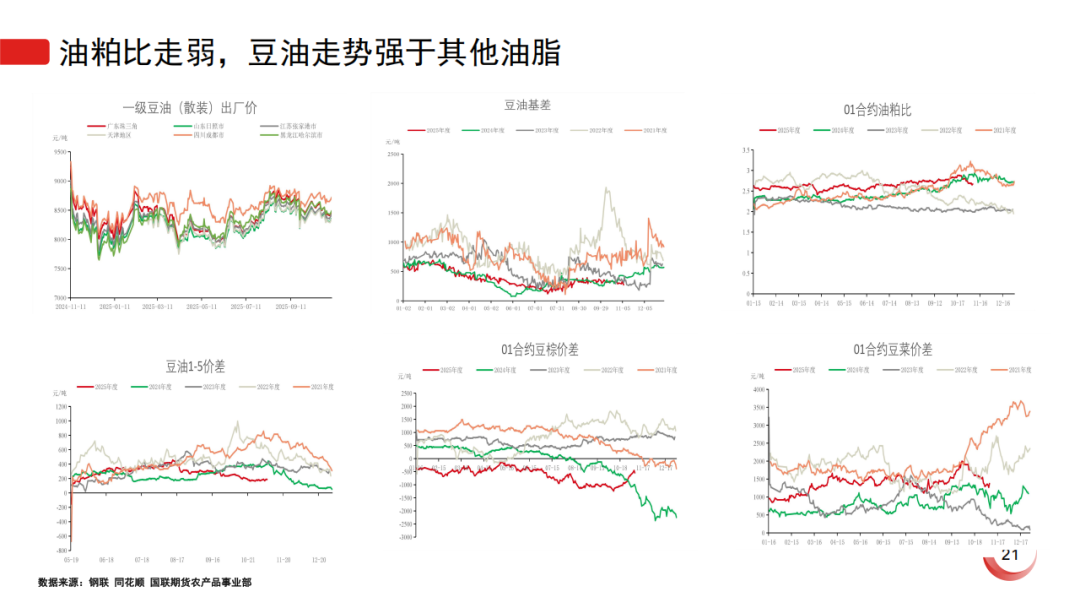 跨品种价差:豆菜粕价差扩大为主。关注1月豆菜粕价差正套。