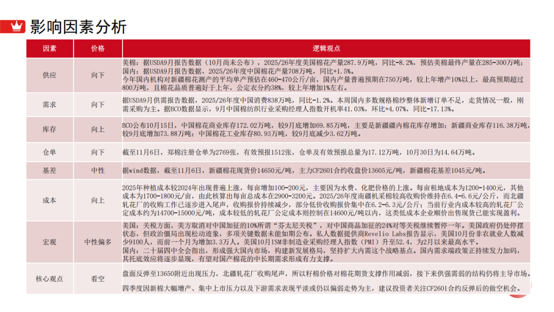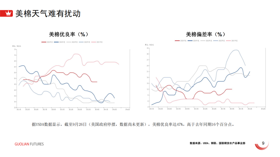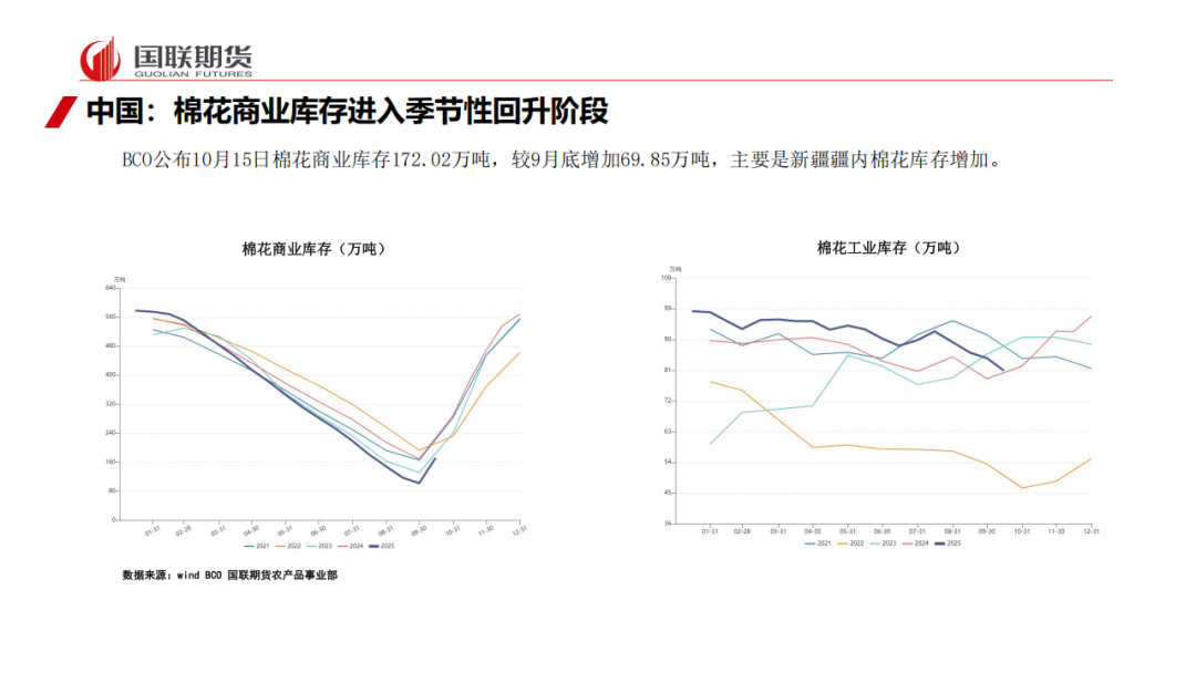 逻辑:国内方面,储备棉成交保持理性,郑棉仓单流出,现货市场棉价涨势暂止。国际方面,美棉跌破80美分整数关口,后期或试探80美分阻力位,优良率差于上年同期,吐絮率高于上年同期;印度提高新年度MSP,其国内棉价近期高位震荡。
