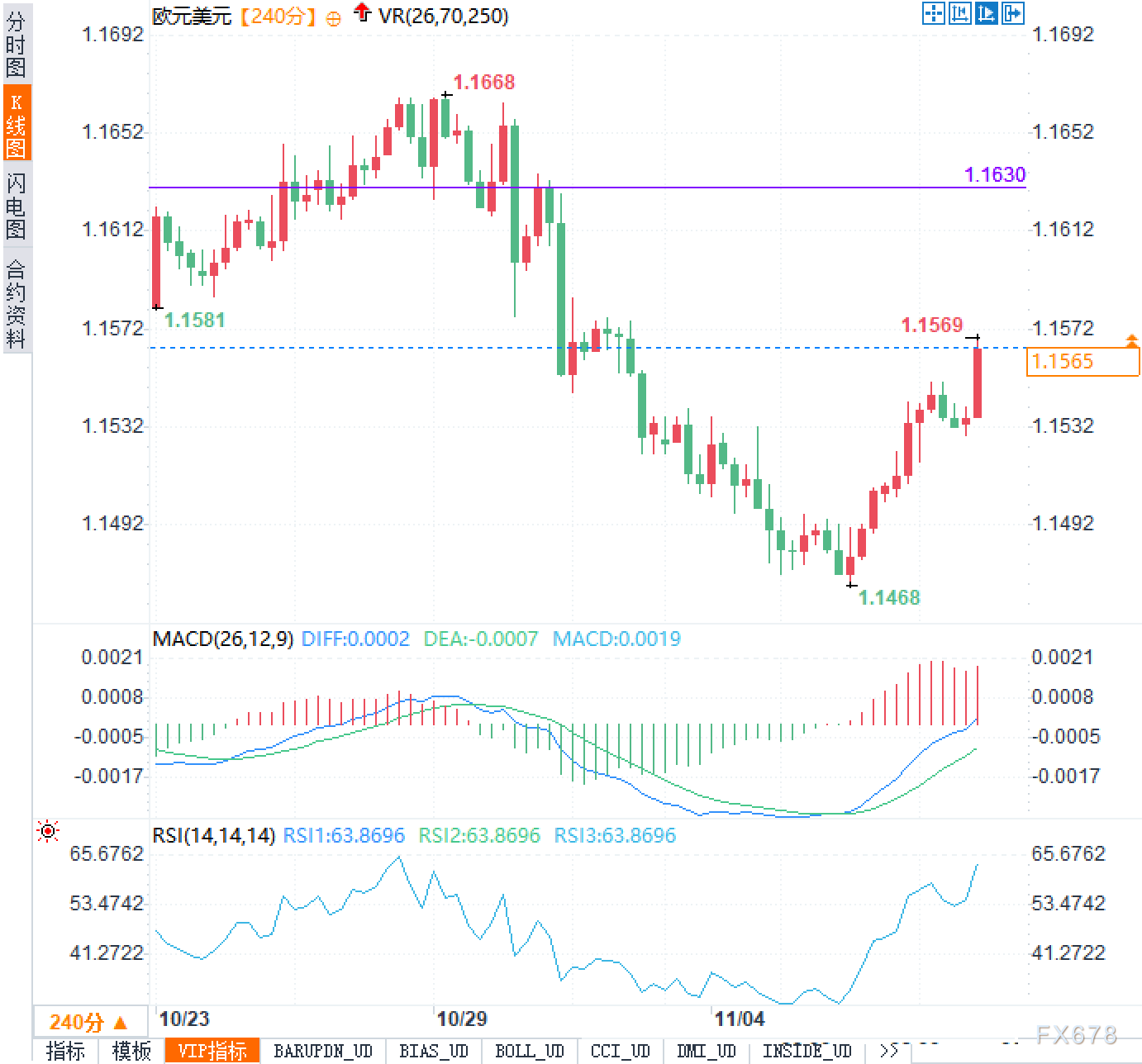 汇通财经APP讯——11月7日,星期五。欧元兑美元延续反弹,北美时段现报1.1565。美元指数走弱,风险资产的波动与避险情绪交替主导盘面。在官方就业与通胀数据暂时缺席的环境下,市场对美联储与欧洲央行的政策路径再定价趋于谨慎,欧元兑美元进入以存量信息博弈为主的窄幅拉锯。