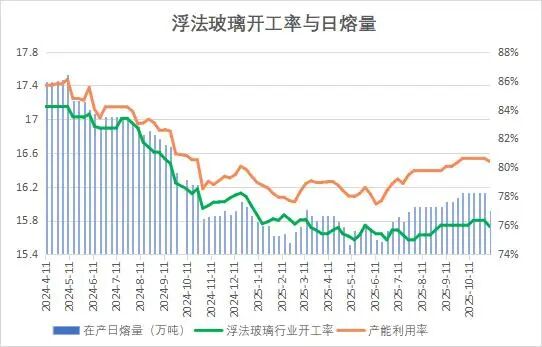 财联社鹰眼讯,据隆众资讯,本周浮法玻璃行业平均开工率环降0.43%至75.92%,平均产能利用率环降0.2%至80.42%,10月31日-11月6日全国浮法玻璃产量112.61万吨,环比减少0.25%,同比则增加1.87%。截至今日,全国浮法玻璃日产量为15.91万吨,创15周内最低。