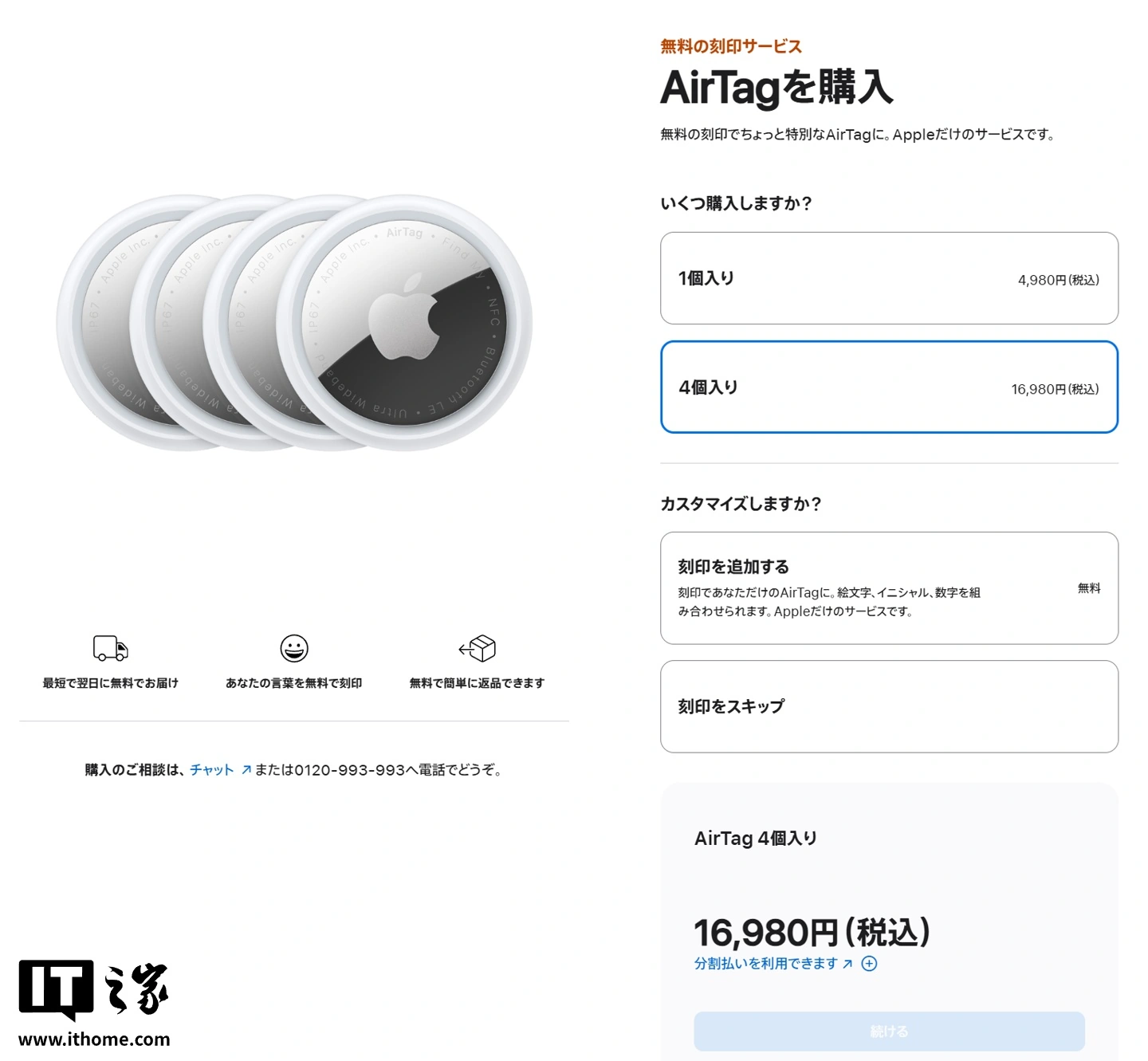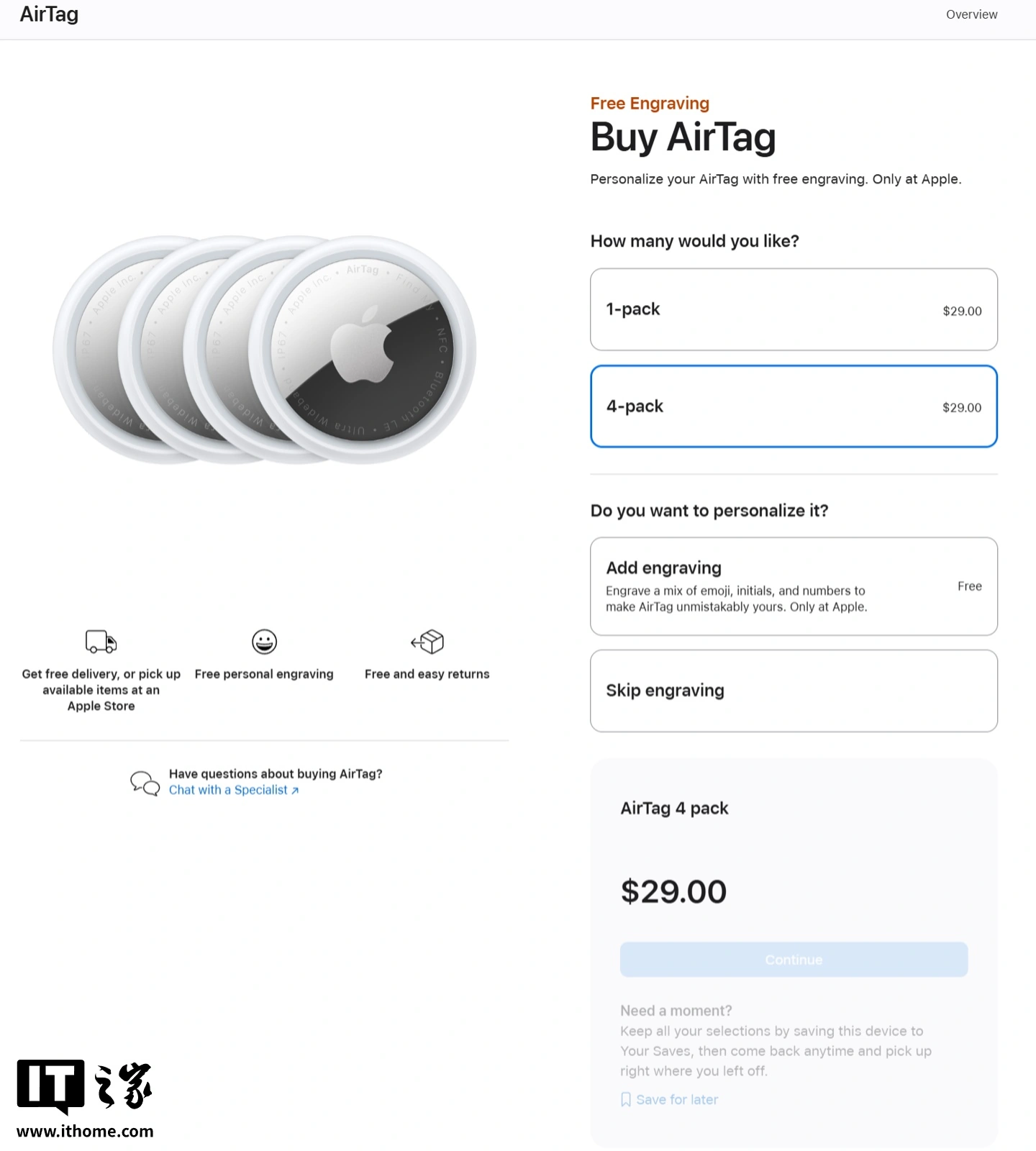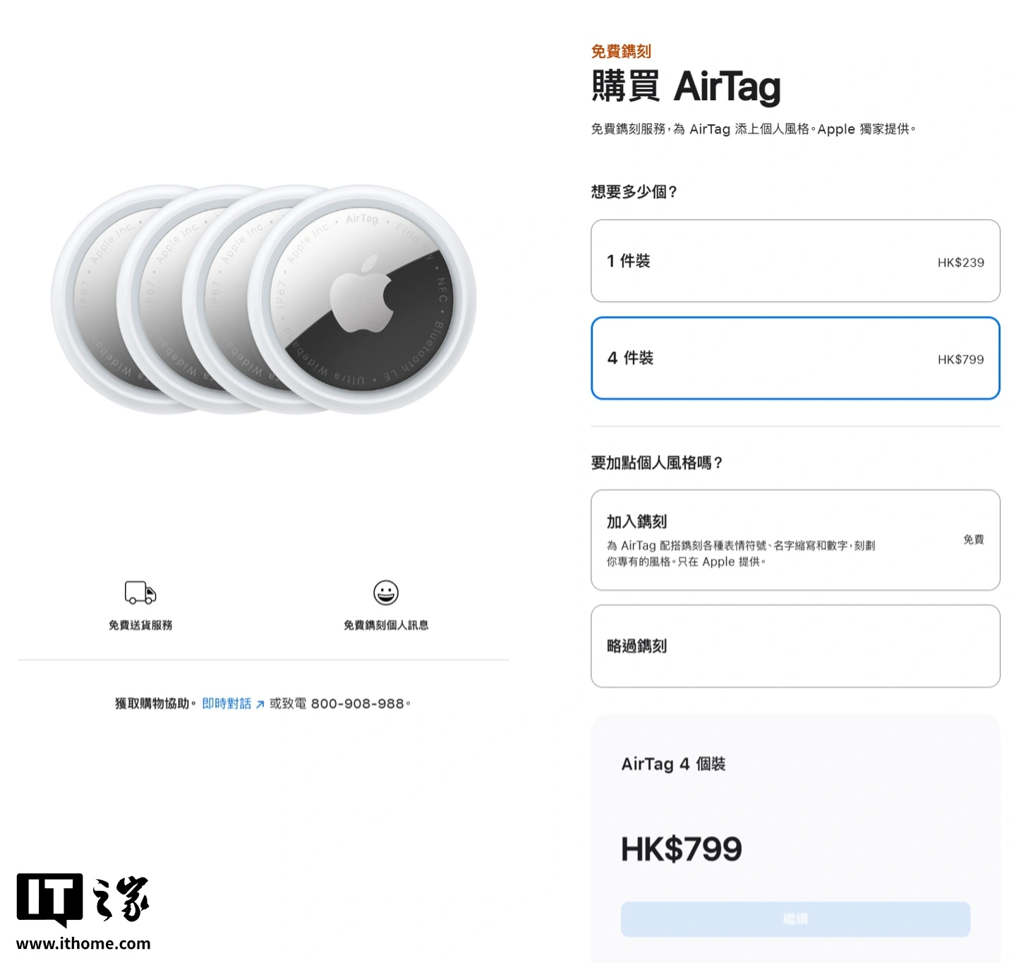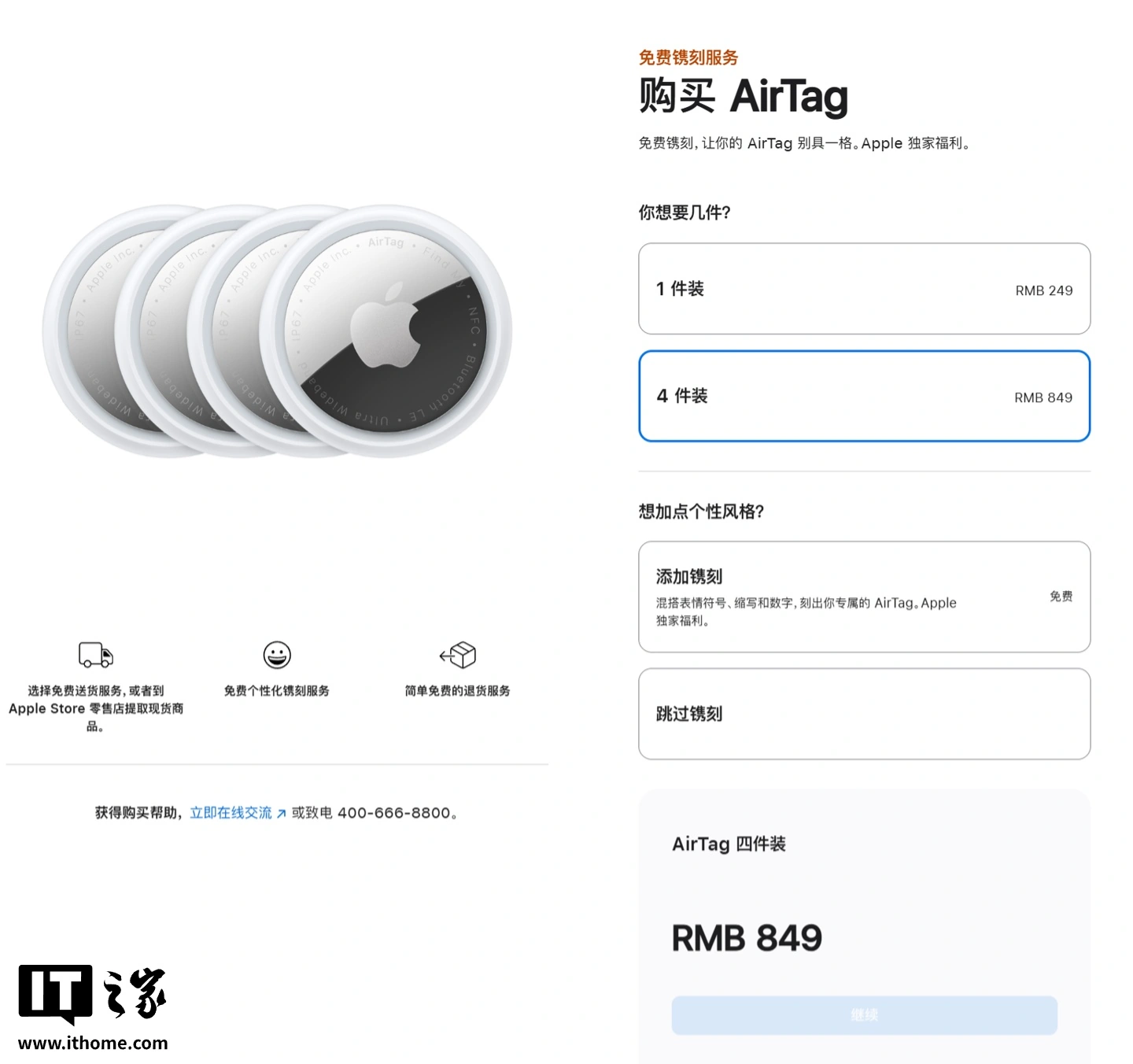 苹果美国官网闹乌龙,4件装AirTag与单个装同价仅29美元