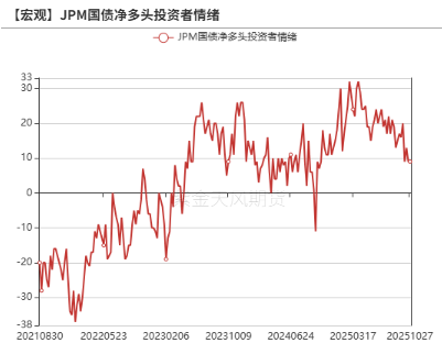 截至11.3当周,JPM国债净多头投资者情绪15,较前一周回升。