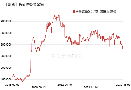 上周三美联储准备金余额为2.852万亿美元,较前一周回升240亿。