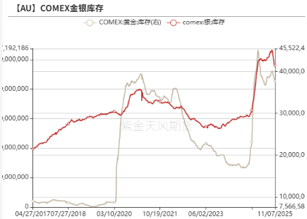库存方面,上周COMEX黄金库存为3772.9万盎司,环比减少43.86万盎司,COMEX白银库存为48011.6万盎司,环比减少232.3万盎司;上周SHFE黄金库存约为89.62吨,环比增加1.80吨,SHFE白银库存环比减少48.88吨至609.98吨。