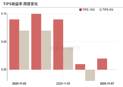 5年期和10年期TIPS收益率分化,5年期TIPS收益率收于1.31%,较前周持平;10年期TIPS收益率收于1.83%,较前周上行2bp。