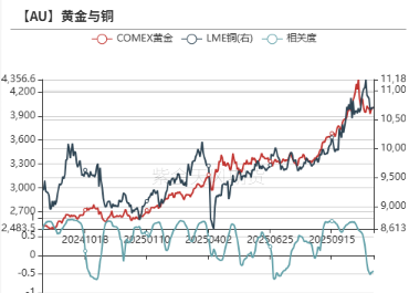 从滚动相关性的角度来看,黄金与原油相关性变低,与铜和美元指数的相关性上升。