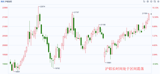 电解铝:国内电解铝产能受“双碳” 政策约束,但开工率调节灵活,通过启停电解槽,1-3 个月可调整产能 10%-15%,供给弹性 0.8-1.0。因此沪铝在绝大多数时间价格均位于1.8-2.3万的区间范围内。