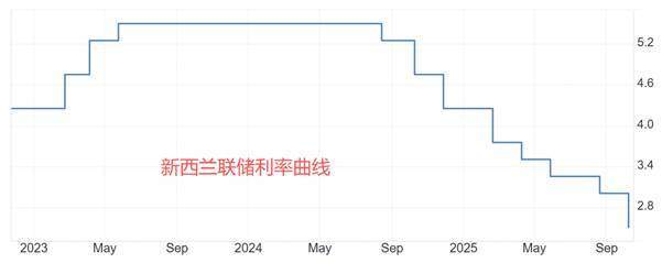 2024年8月份至今年10月,新西兰联储连续降息8次,累计降幅300基点,基准利率低至2.5%。利率是持有货币的核心吸引力,新西兰联储不计成本地降息,严重削弱了持有新西兰元交易者的信心。新西兰联储给出的解释是:闲置产能和谨慎的家庭/企业支出会减缓经济复苏。可以看出,新西兰联储对未来新西兰的宏观经济前景持悲观态度。